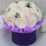 17 белых ранункулюсов в шляпной коробке в Батайске