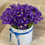 45 фиолетовых ирисов в шляпной коробке в Батайске