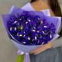 На фото букет из 51 синего ириса. В составе: ирис 51 шт, дизайнерская упаковка 2 шт, атласная лента 2 шт, . Все цветы свежие и ароматные, букет красиво оформлен и отлично подходит для подарка. Доступна доставка цветов или самовывоз.