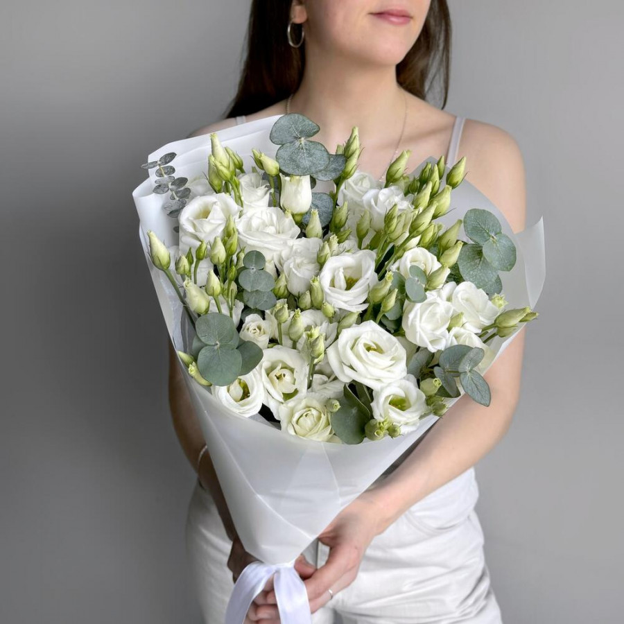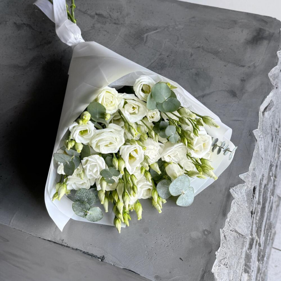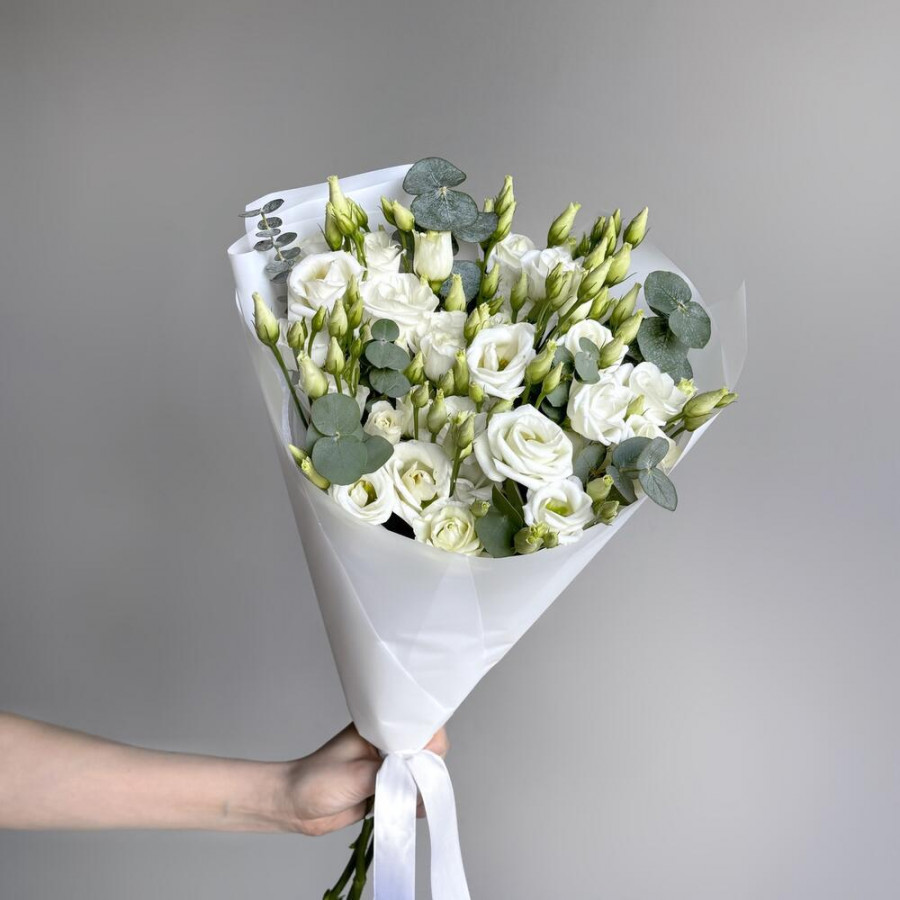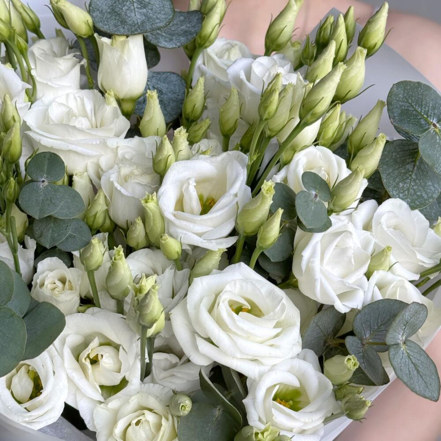 Букет из 7 белых эустом и эвкалипта в Батайске