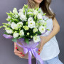 Букет из белой эустомы и розовых гвоздик