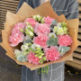 Букет из белой эустомы и розовых гвоздик в Батайске
