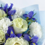 Букет из белых гвоздик, синих ирисов и белых роз в Батайске