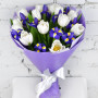 Букет из синих ирисов и белых тюльпанов в Батайске