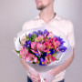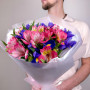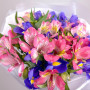 Букет из синих ирисов из розовых альстромерий в Батайске