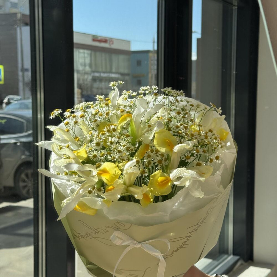 Букет из желтых ирисов и ромашек в Батайске