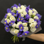 Букет из синих ириcов и белой кустовой розы в Батайске